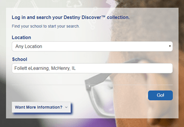 - School: select “Follett eLearning, McHenry, IL”,