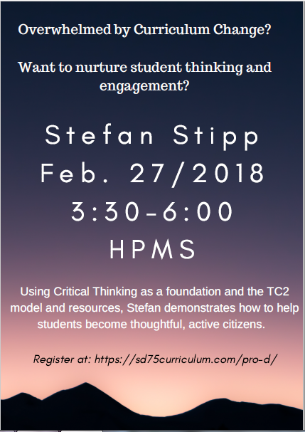 Join Stefan Stipp from the Critical Thinking Consortium for a day of hands-on professional learning designed specifically for Social Studies teachers. Teachers will have the opportunity to create frameworks for mini-units that align with the redesigned curriculum.