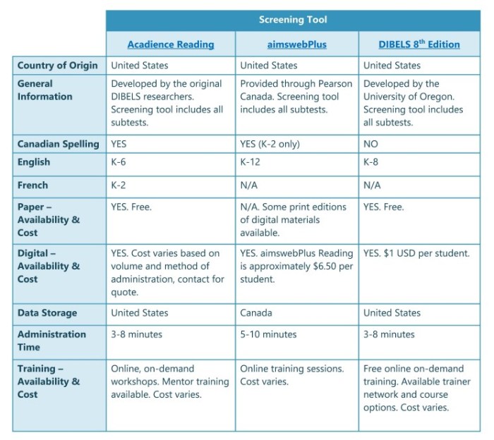 The Ministry of Education has recommended three recommended commercial screeners for early literacy screening. Here is a comparison chart of the three recommended tools: