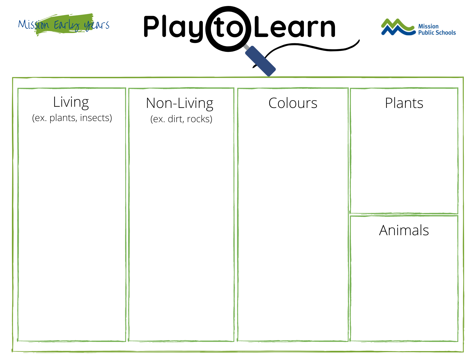 Play to Learn Activities (designed by MPSD StrongStart Team):