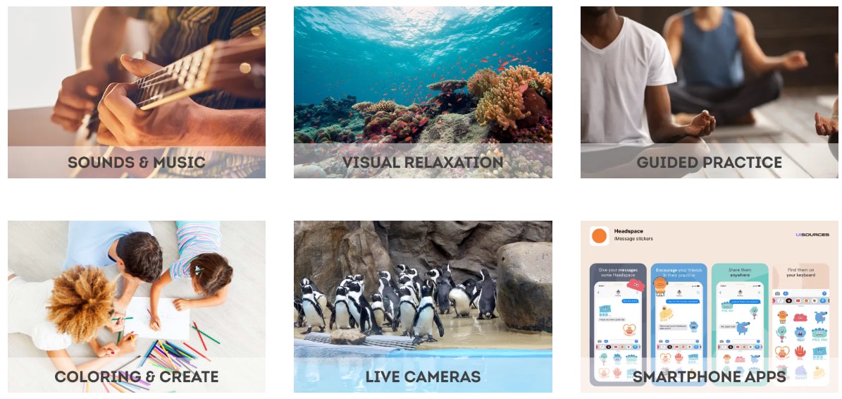 - Resources and Guided mindful meditations.